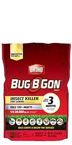 › ortho-bug-b-gon-lawn-insect-killerOrtho® Bug B-gon™ Lawn Insect Killer Protect your lawn landscape and garden from bugs with Ortho® Bug B-gon™ Lawn Insect Killer; kills 142 insects, including ants, armyworms, ticks, spiders, grubs, and fleas; kills above and below the ground; OUTDOOR BUG KILLER: It kills all listed insects, and it controls ants outdoors for 6 months (except pharaoh, carpenter and harvester ants)