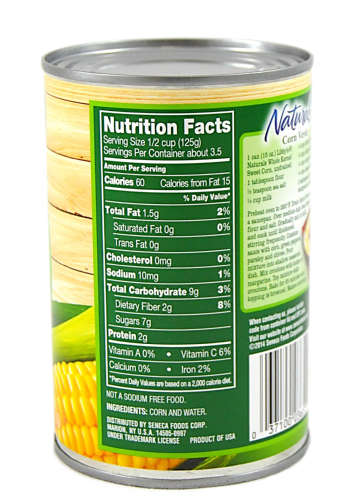 Del monte canned corn nutrition label