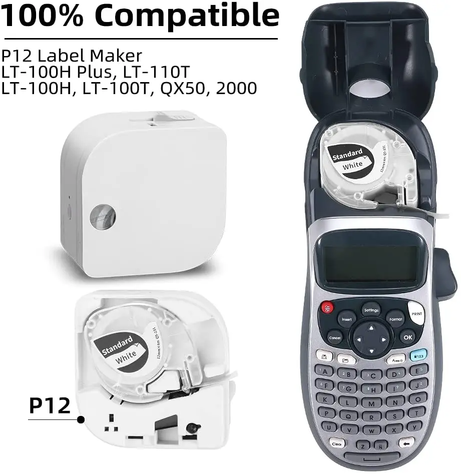 91201 91200 Black on White Compatible for Dymo LetraTag Label Tape 12mm Plastic 91331 91221 Ribbon for LT100H 100T Label Printer