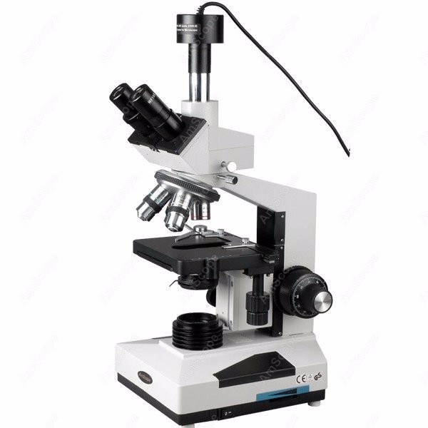 Trinocular Compound Microscope--AmScope Supplies Trinocular Compound Microscope with 1.3MP Digital Camera T400A-M