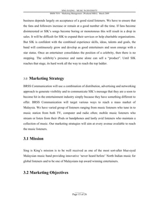 Creating a Successful Marketing Plan (for the Artist) - SaskMusic Music marketing plans tend to incorporate more than the standard business marketing plan. ... Briefly introduce the band/artist – it should be a mini bio.11 pages