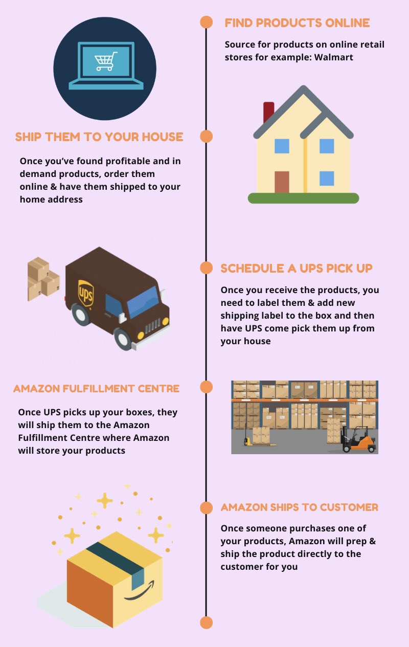 How To Send Items to Amazon FBA - Step By Step Guide Make sure both the UPS and Amazon barcodes are visible. Step 6: You can drop off the shipment at the nearest UPS center. Sellers can also schedule a pickup. Your shipment is now ready! Amazon will take it from here and make sure all your products are delivered on time. Pros The new FBA method has fewer steps than the original method.