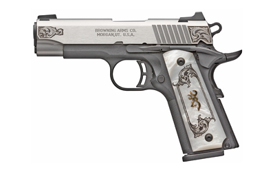 Browning 1911-380 Black Label Pistol with High Grade Pearl Grips Browning's 1911-380 is the Right Design, the Right Size, with the Right Features. It is The Right 380. The 1911-380 combines the proven 1911 design with another of John Browning's inventions —the 380 ACP cartridge — in a package that is 15% smaller than the 45 ACP models and tips the scales at a mere 17-1/2 ounces unloaded.