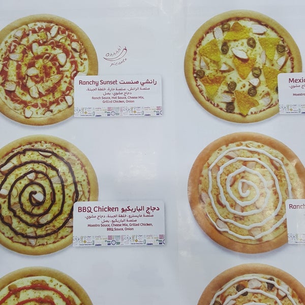 › dubai › maestro-pizza-al-hudaibaMaestro Pizza, Al Hudaiba and Around order online - Zomato [Calories: 77 kcal] Maestro tomato sauce, mozzarella and pepperoni. Ranch Original No Jalapeno Pizza AED30 [Calories: 97 kcal] White pizza sauce, mozzarella, grilled chicken and ranch swirl. Dynamite Chicken Pizza AED30 [Calories: 91 kcal] Mozzarella, chicken, onion, green bell pepper and dynamite sauce. Buffalo Chicken Pizza AED30