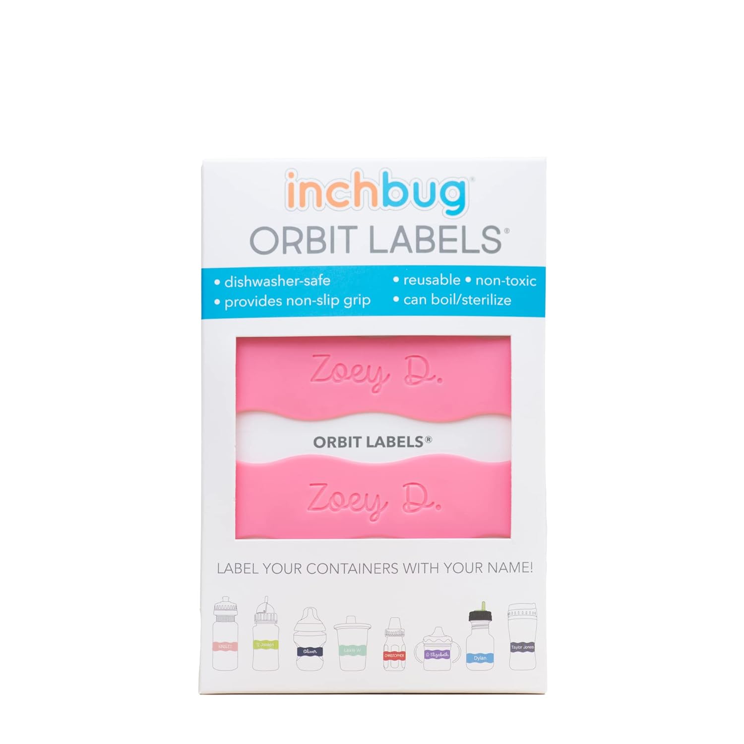 InchBug (4 Pack) Original Orbit Labels Personalized (Bubblegum Pink) Our labels are still non-adhesive, reusable, and personalized to meet your needs. They're also easy to use - just stretch and release for a snug fit around your bottles, sippy cups, and snack containers. Say goodbye to "permanent" marker that disappears in the dishwasher; InchBug labels will never peel, fade, or wash away!