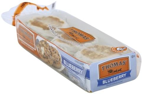 Thomas' English Muffins Blueberry - 6 ct - Stop & Shop Thomas' English Muffins Blueberry - 6 ct 13 oz pkg See Best Price Quick Facts Kosher Nutrition 160 Calories 0g Sat Fat 230mg Sodium 4g Sugars Nutrition Facts 6 servings per container Serving Size 1.0 muffin Amount per serving Calories 160 % Daily Value* Total Fat 2g 2 Saturated Fat 0g 0 Trans Fat 0g Polyunsaturated Fat 0.5g Monounsaturated Fat 0g