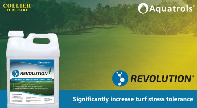 Revolution - Aquatrols Revolution® is the only soil surfactant technology that goes beyond water repellency issues, providing comprehensive water management and plant health benefits as well. Revolution's patented formulation creates a thin continuous film of water in the soil profile, balancing air-to-water ratios and increasing the performance of turf under stress.