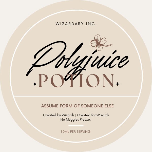 Polyjuice Label - Etsy UK Polyjuice Label - Etsy UK Polyjuice Label (69 relevant results) Price (£) Shops Anywhere Harry Potter Sticker Pack, Chamber of Secrets, Dobby, Polyjuice Potion, Howler, Removable, Free Stickers! (7 pack) CartsArts (378) £7.99 FREE UK delivery 2 Polyjuice Potion Halloween Potion or Wine Bottle Label DrPuggensteinGoos (72) £3.76