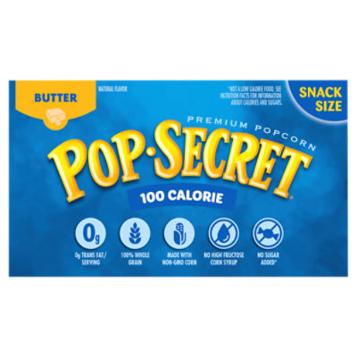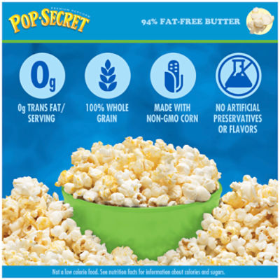 Pop Secret Popcorn, Premium, Microwave, Butter Nutrition Facts Pop Secret Popcorn, Premium, Microwave, Butter. 460874. Pop Secret Popcorn, Premium, Microwave, Butter ... Analysis Close. KEY FACTS (learn about health benefits or risks) Has high calorie density - this means that the amount of calories you are getting from an ounce is high (0.19 cal/oz). Rich in vitamins and minerals (533.9%/cal) - a good ...