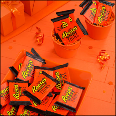 REESE'S THiNS Dark Chocolate Peanut Butter Cups - Hersheyland REESE'S Kosher Nutrition Information Nutrition Facts Servings Per Container about 2.5 Serving size 3 pieces Amount per serving Calories 170 % Daily Value* Total Fat 11g 15% Saturated Fat 6g 29% Trans Fat 0g Cholesterol 5mg 1% Sodium 50mg 2% Total Carbohydrates 18g 7% Dietary Fiber 2g 7% Total Sugars 15g Includes 15g Added Sugar 30% Protein 3g REESE'S - Thins Peanut Butter Cups - SmartLabel™ REESE'S. Thins Peanut Butter Cups. net wt. 3.1 oz. 00034000460632. Nutrition . Ingredients . ... 2,000 calories a day is used for general nutrition advice.