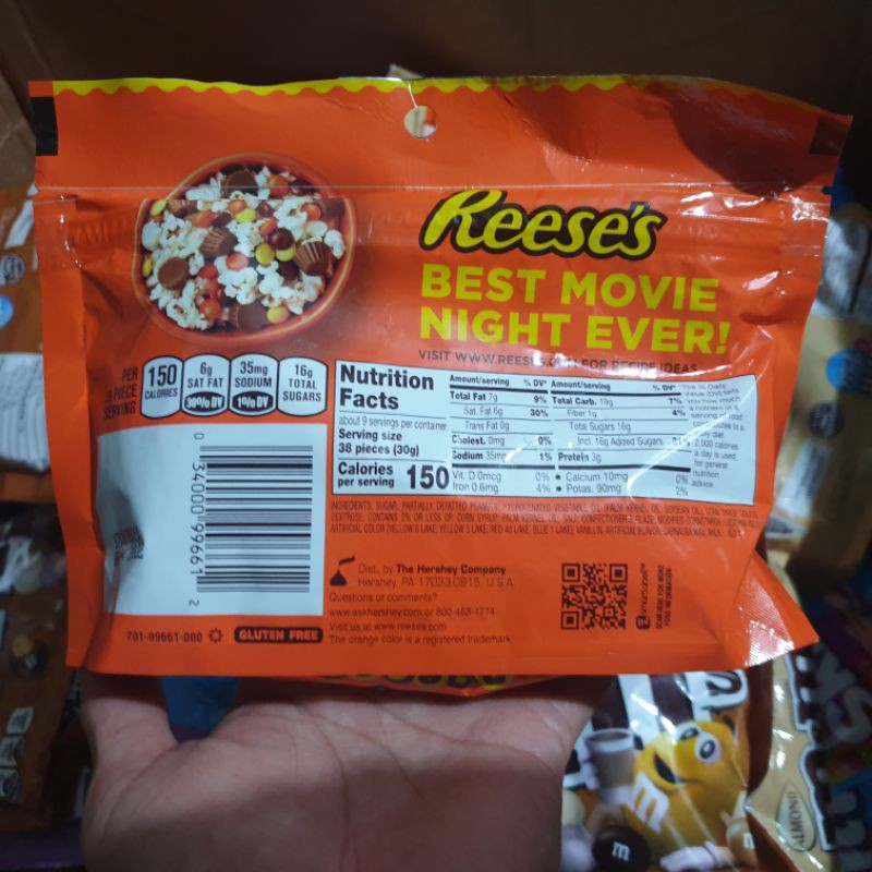 Reese's thins carbs. REESE'S - Thins Peanut Butter Cups - SmartLabel™ REESE'S. Thins Peanut Butter Cups. net wt. 3.1 oz. 00034000460632. Nutrition . Ingredients . ... 2,000 calories a day is used for general nutrition advice. REESE'S THiNS Dark Chocolate Peanut Butter Cups - Hersheyland REESE'S Kosher Nutrition Information Nutrition Facts Servings Per Container about 2.5 Serving size 3 pieces Amount per serving Calories 170 % Daily Value* Total Fat 11g 15% Saturated Fat 6g 29% Trans Fat 0g Cholesterol 5mg 1% Sodium 50mg 2% Total Carbohydrates 18g 7% Dietary Fiber 2g 7% Total Sugars 15g Includes 15g Added Sugar 30% Protein 3g