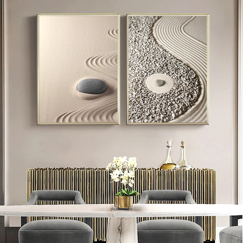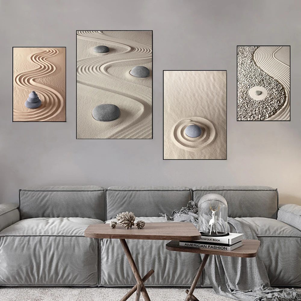 Pasir Batu Batu Meditasi Zen Tenang Lukisan Kanvas Gambar Seni Dinding Cetak Kantor Ruang Tamu Dekorasi Rumah Perhiasan