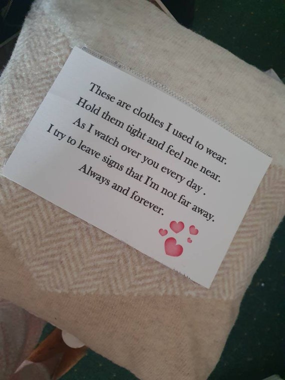 Custom Memory Shirt Quilt Label with poem and name Custom Memory Shirt Quilt Label with poem and name ... These iron on/sew on labels are perfect for memory quilts and pillows made from loved one's clothing .