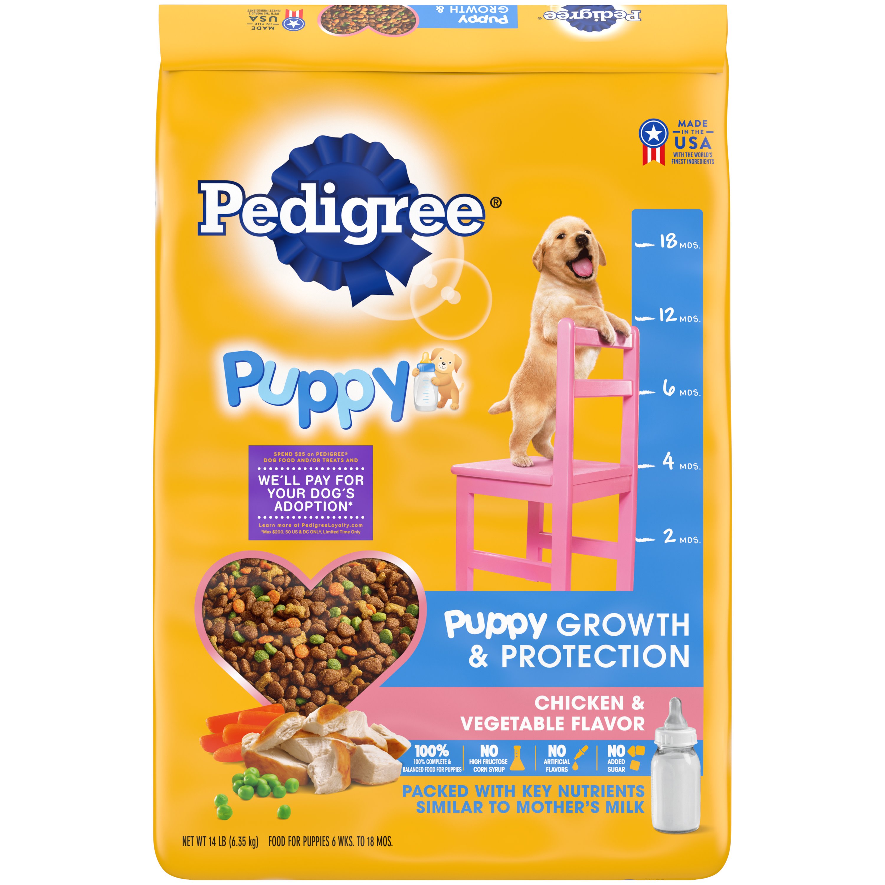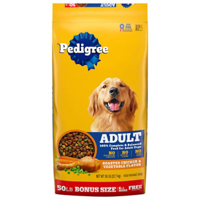 Facts About PEDIGREE® Dog Food The total meat and animal derivatives content of our PEDIGREE® wet food ranges from 27% to 65%, and for PEDIGREE® dry food it ranges between 15 and 39%. The ... PEDIGREE Complete Nutrition Roasted Chicken, Rice & Vegetable ... Whether you have a puppy or a senior, Pedigree's wet dog food offers complete nourishment with digestible ingredients for dogs from all barks of life. PEDIGREE Puppy Growth and Protection Chicken & Vegetable Flavor Dog Food is formulated to help your pup keep up with the big dogs. This dry food formula is made with DHA for healthy canine brain development, plus calcium and phosphorus for healthy teeth and strong bones in young dogs.