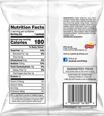Fritos® Flamin' Hot® Flavored Corn Chips Nutrition Facts. Serving size: About 28 chips (28g) Calories: 160 % Daily Value* Total Fat 10g: 13%: Saturated Fat 1.5g: 7%: Trans Fat 0g: Cholesterol 0mg: 0%: Sodium 170mg: 7%: ... Fritos ® Chili Cheese Flavored Corn Chips (opens a new window) (opens a new window) (opens a new window) (opens a new window) Sonic Fritos Chili Cheese Jr Wrap Nutrition Facts - FastFoodNutrition.org For a limited time, Sonic is offering the Fritos Chili Cheese Jr Wrap, featuring beef chili, cheese sauce and Fritos corn snacks, wrapped in a flour tortilla. A Sonic Fritos Chili Cheese Jr Wrap contains 380 calories, 20 grams of fat and 39 grams of carbohydrates. According to our website visitors, a Fritos Chili Cheese Jr Wrap is not a healthy ... FRITOS® Chili Cheese Flavored Corn Chips | FritoLay FRITOS ® Chili Cheese Flavored Corn Chips The popularity of FRITOS ® corn chips puts this iconic snack in a class of its own. From small towns and family barbecues to parties in the big city, this classic snack is still satisfying fans after more than 80 years. Fritos® Lightly Salted Corn Chips Nutrition Facts. Serving size: About 34 chips (28g) Calories: 160 % Daily Value* Total Fat 10g: 13%: Saturated Fat 1.5g: 7%: Trans Fat 0g: ... Fritos ® Flavor Twists ® Honey BBQ Flavored Corn Chips. Fritos ® Chili Cheese Flavored Corn Chips.