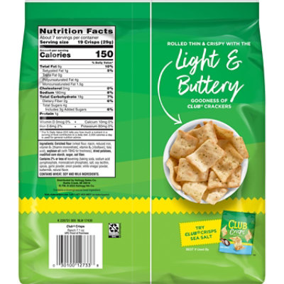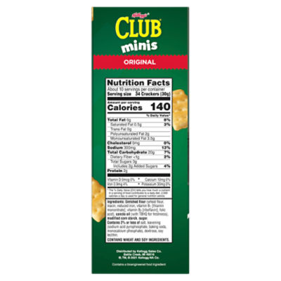 Kellogg's® Club® Original Crackers Kellogg's® Club® Original Crackers 3.7 (599) Write a review About this item: Details Nutrition Facts & Ingredients Where To Buy Highlights Flaky and buttery with a hint of salt and a melt-in-your-mouth texture. Pair them with your favorite topping or not, because they're so good, you can leave the topping behind! Featured Recipes